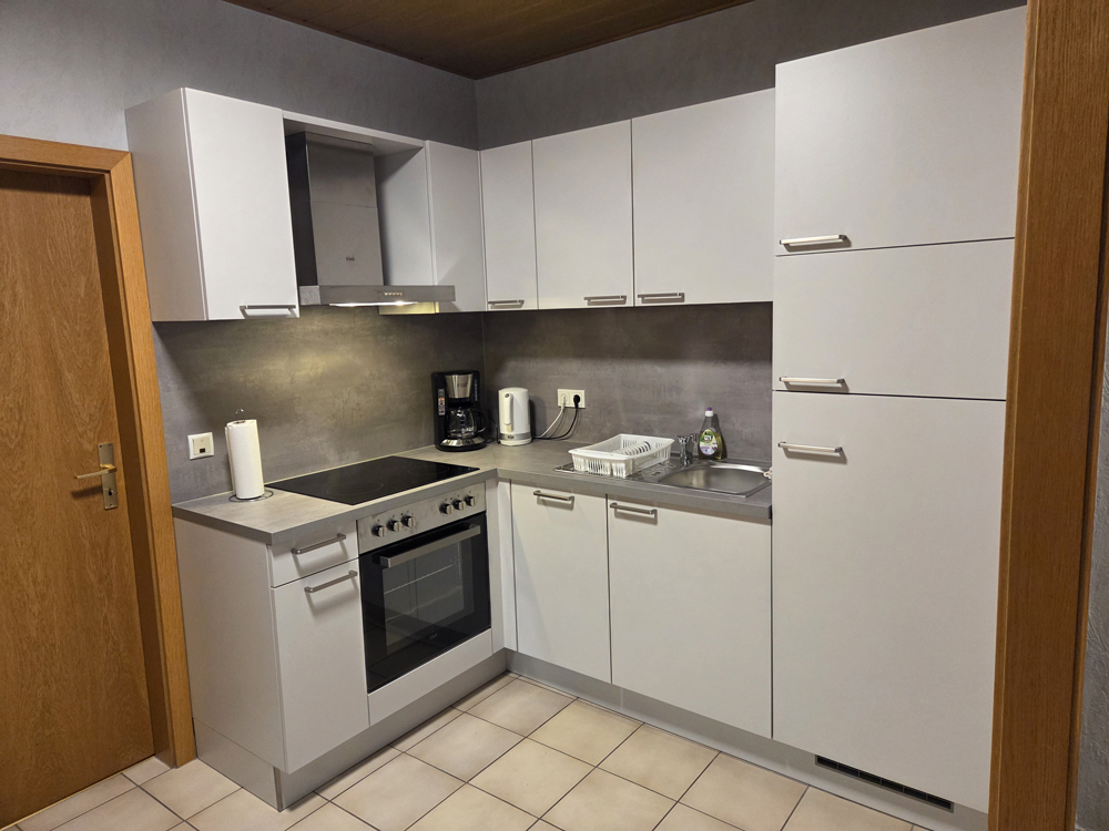 - Neue Küche mit Backofen, Spülmaschine, Kühl-Gefrier-Kombination, Kaffeemaschine, Wasserkocher, Mikrowelle